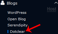 On the left side of your screen you should locate the "Blogs" category. Click on it and then click on the "Dotclear" link that will appear.